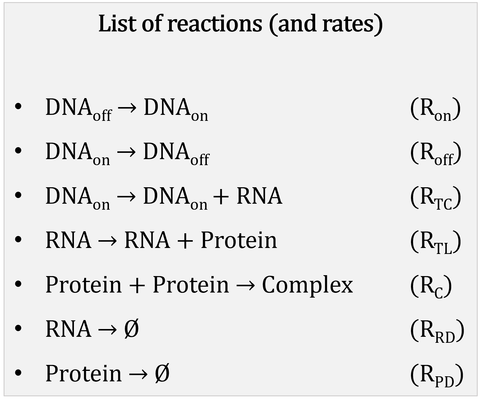 To simulate the evolution of the system over time, we need to know which reaction will fire when.