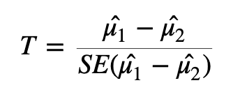 Here we are taking the difference between the means of the two groups and then dividing that difference by some measure of variability - in this case, dividing by the standard error.