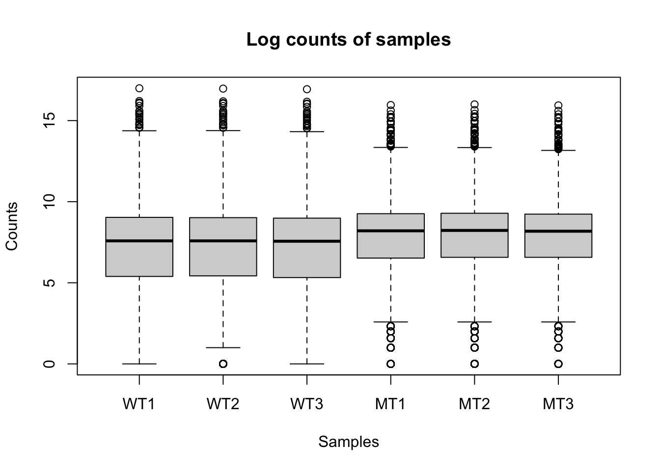 counts %>% head() WT1 WT2 WT3 MT1 MT2 MT3
