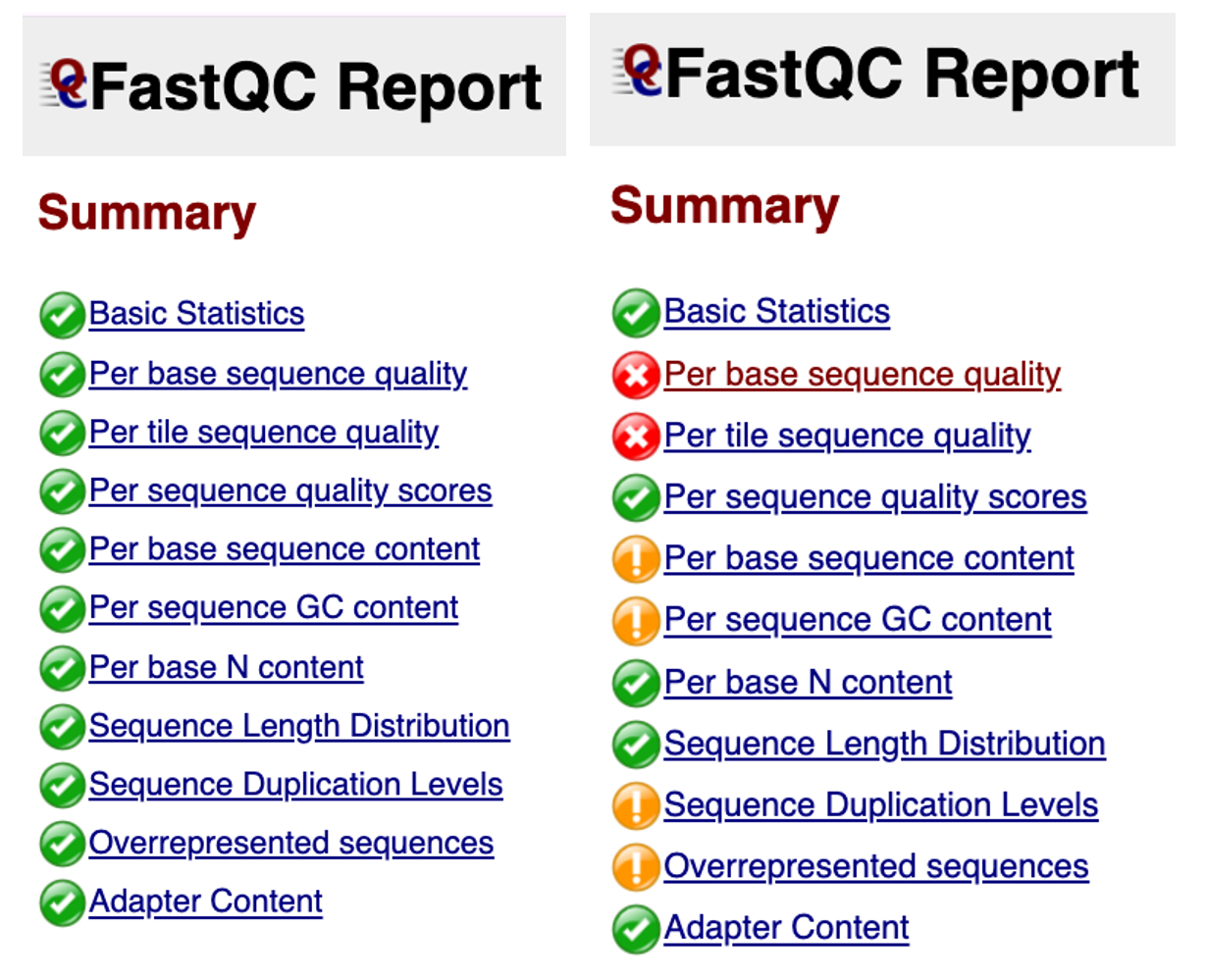 FastQC will give you a good overview of the quality of the reads (i.e., how confidently each base was called by the sequencing platform) and a few other statistics about the reads. Each statistic will be assigned a PASS, WARNING or FAIL: