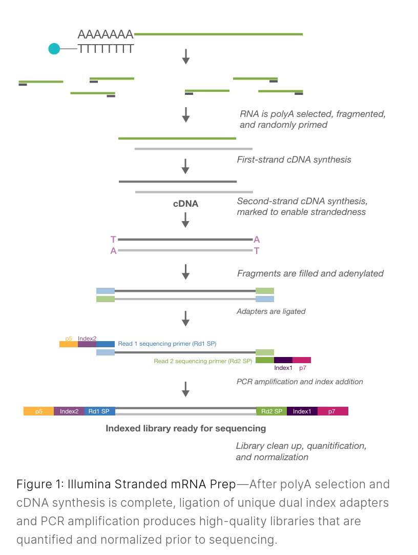 For example, if you are doing a ‘standard’ Illumina RNA sequencing project (e.g,. you plan to do differential gene expression analysis to compare different samples), a common choice is Illumina stranded mRNA library prep, which uses polyA selection to capture mRNA. However, you may chose Illumina total RNA library prep with ribo-depletion, which is more expensive, but it has some advantages such as: it can capture non-polyadenylated RNAs (more comprehensive RNA profile) and and is a better option if your samples are partially degraded (it can also handle FFPE samples).