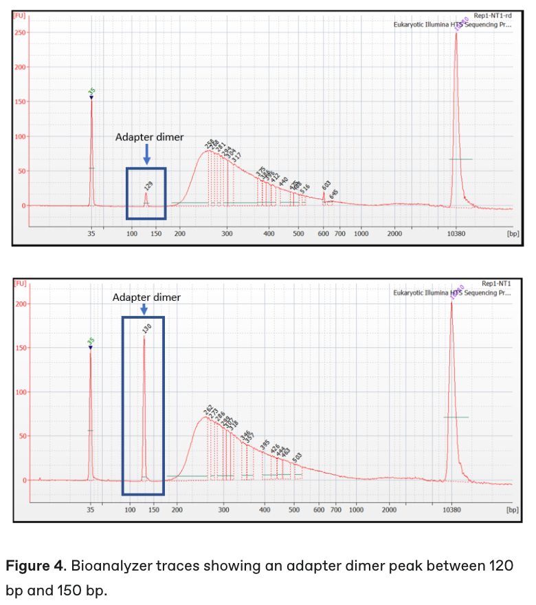 leftover adapter dimers (which waste sequencing reads as they take up ‘real estate’ on the flow cell)