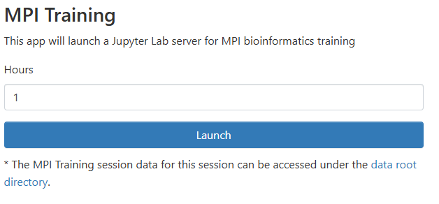 Once these details are submitted, you will be redirected to a loading page. Scroll through the training options until you find the button for the MPI training environment.