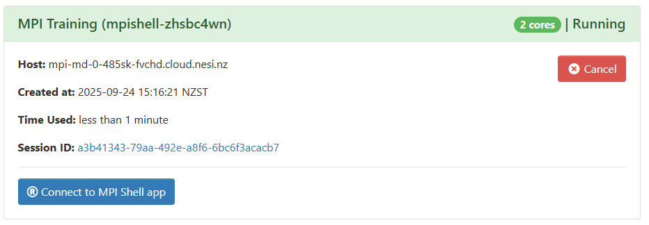 It may take a moment for the server to come online. You will know that it is ready when the interface displays the 'Connect to MPI Shell app' option: